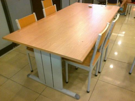 学生在离开阅览桌时,既能符合人体动作习惯,腿部又不容易碰到桌腿,不会造成声响,同时桌面角度可通过卡扣卡眼的配合,调节桌面不同角度,容易使书面与视线垂直,方便学生阅读,不容易造成身体劳累。
